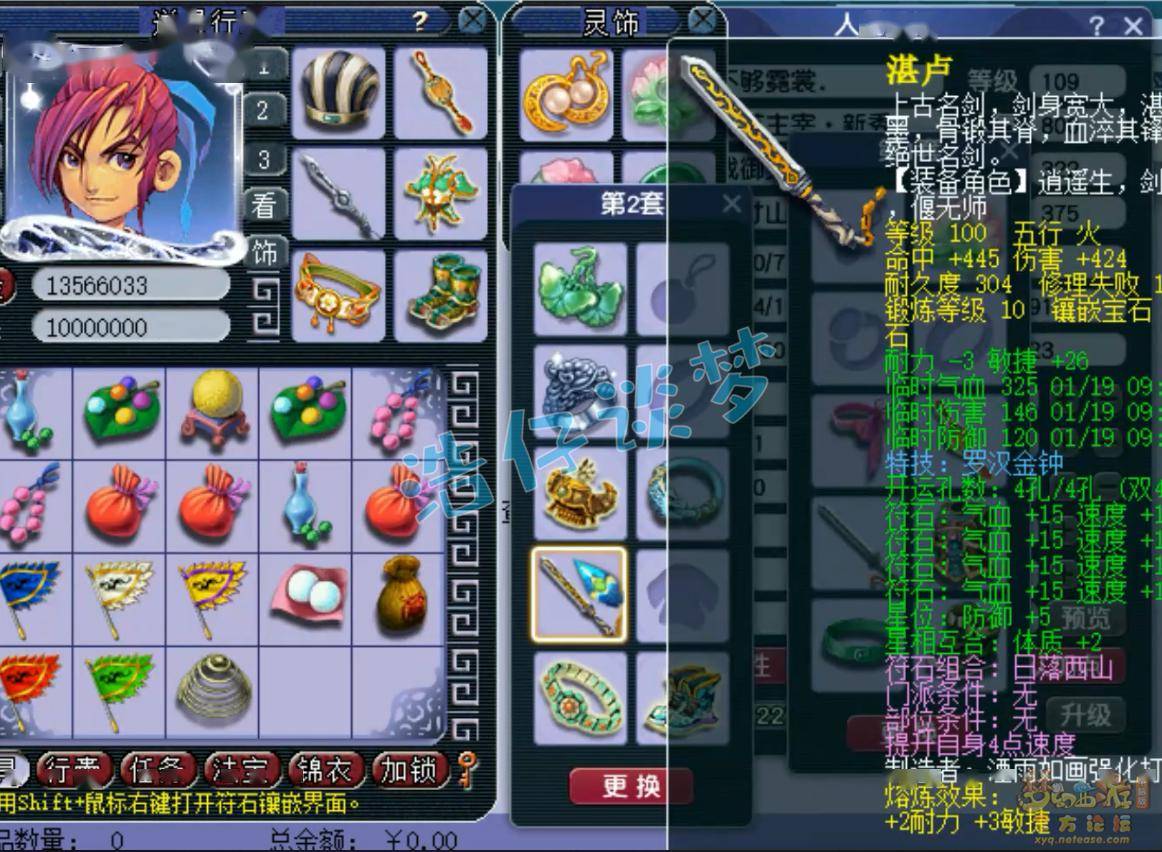 100级罗汉金钟武器,熔炼后减1耐、加29敏,打了10锻太阳石!