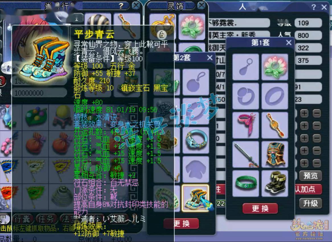 100级带水清诀的机关兽套鞋子,打了10锻黑宝石!