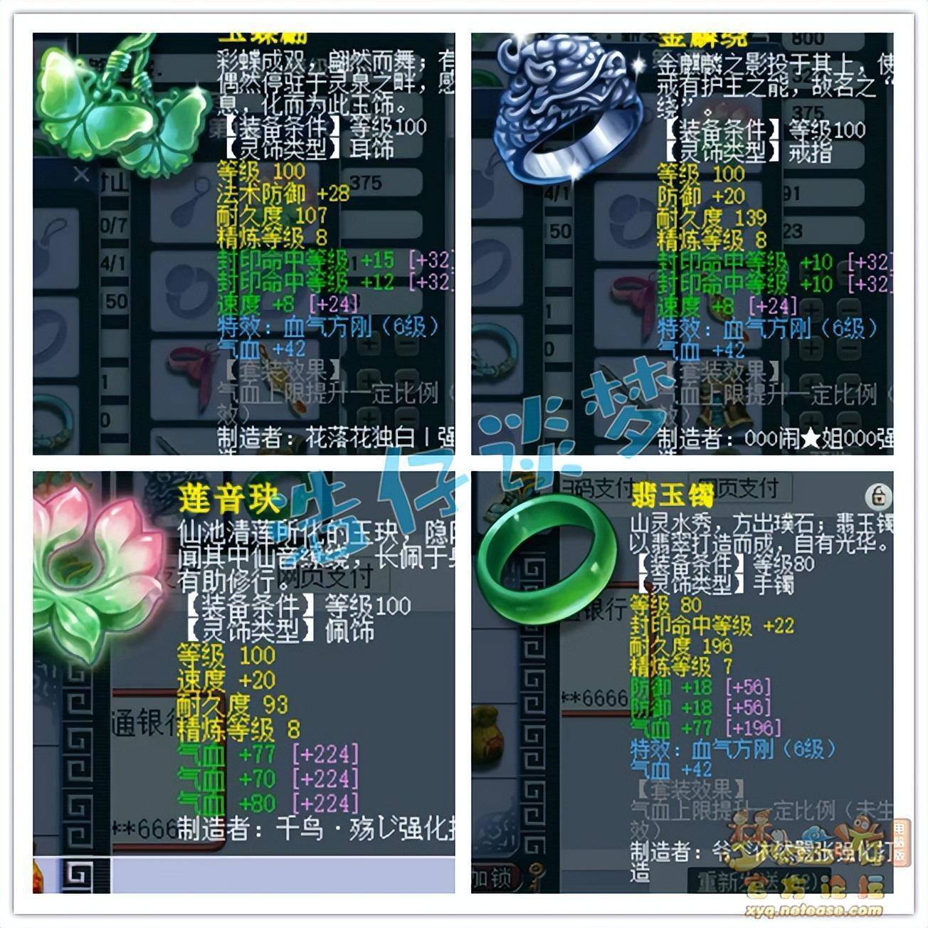 戒指和耳饰下排都是双封印一速度,佩饰下排三气血,手镯下排双防御一气血!