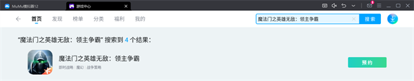 第二步:打开MuMu模拟器12,点击模拟器上方的搜索栏,搜索【魔法门之英雄无敌领主争霸】