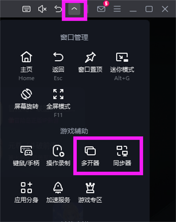 第五步:等待游戏安装完毕后,回到模拟器首页,点击右上角的“小箭头”选择【多开器】。