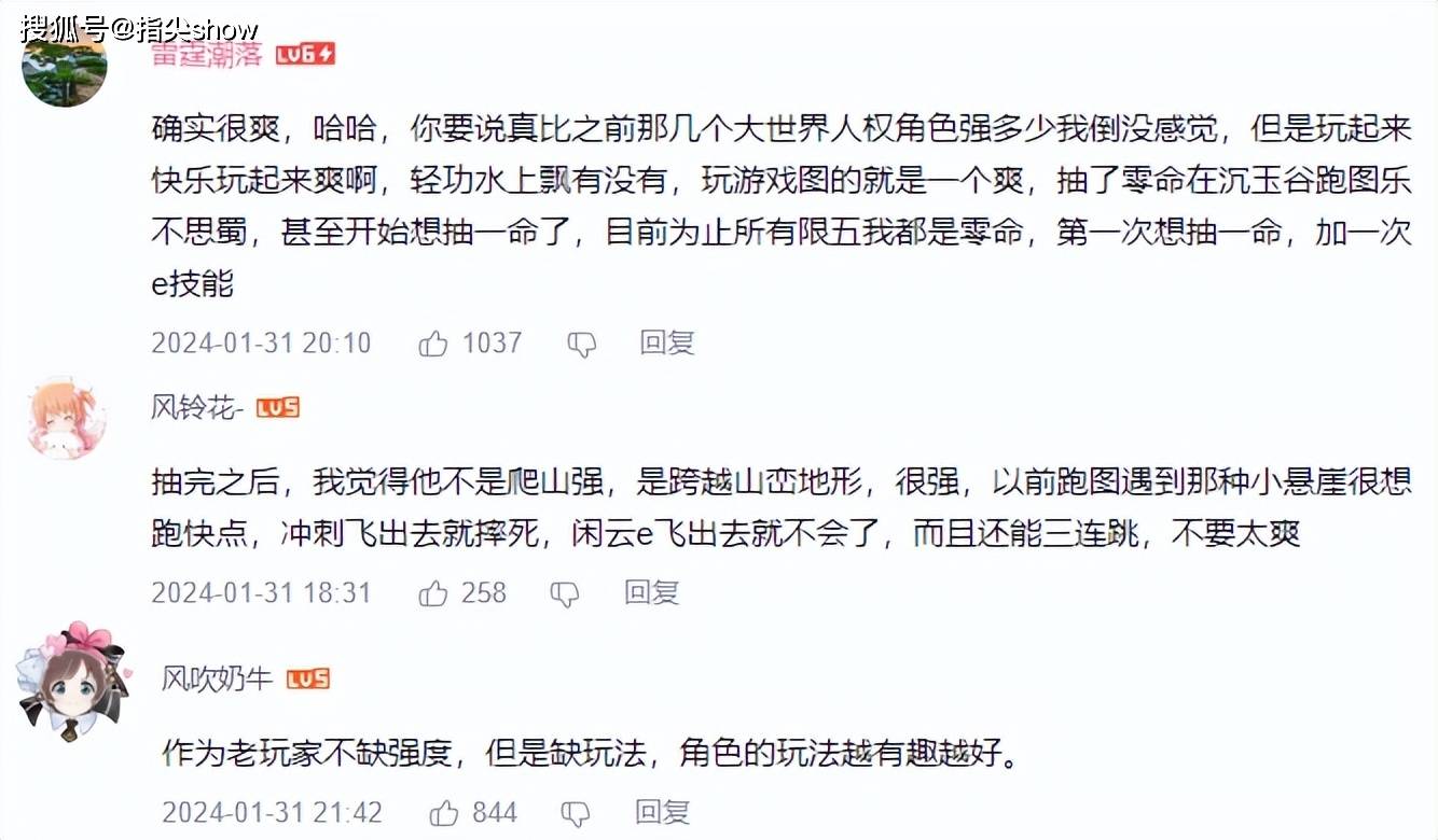 “以前跑图经常摔死,自从有了闲云,三段跳还能活蹦乱跳,太爽了”