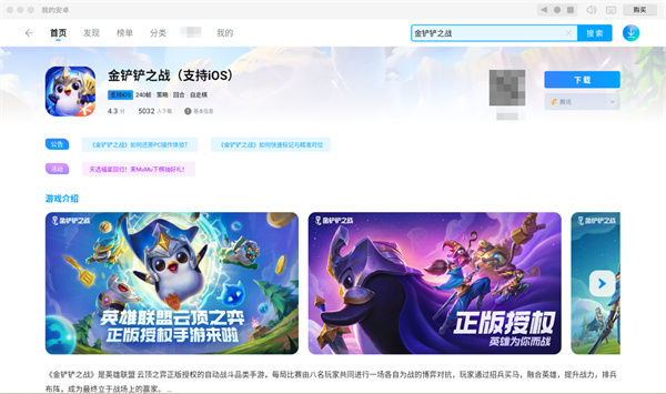 第五步:安装完毕后,回到模拟器桌面,点击游戏图标,就可以在Mac电脑上游玩《金铲铲之战》了。