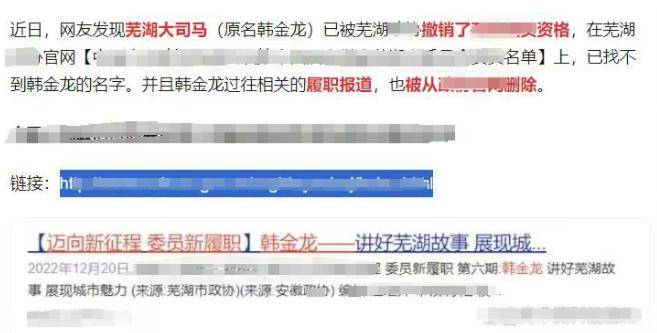 而且不仅是官网找不到韩金龙,小程序、微博等宣传账号,也将大司马相关报道删除。