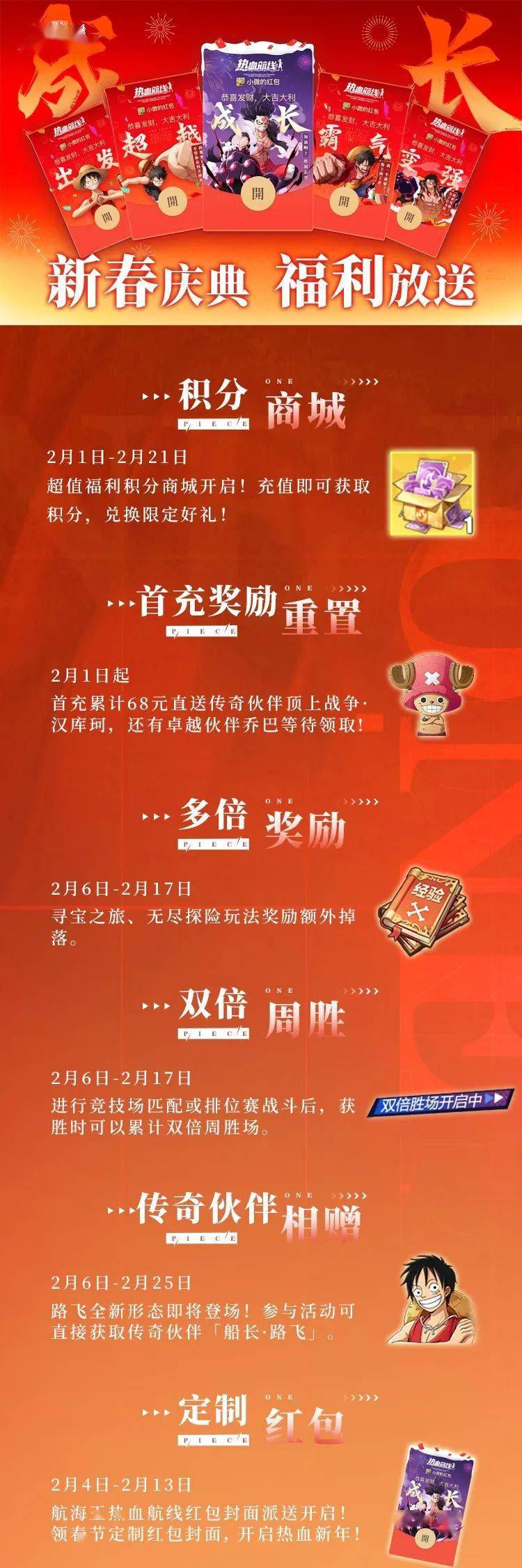2月6日,传奇伙伴「四挡·蛇人·路飞」强者归来!将在游戏内上演一场壮烈的战斗!