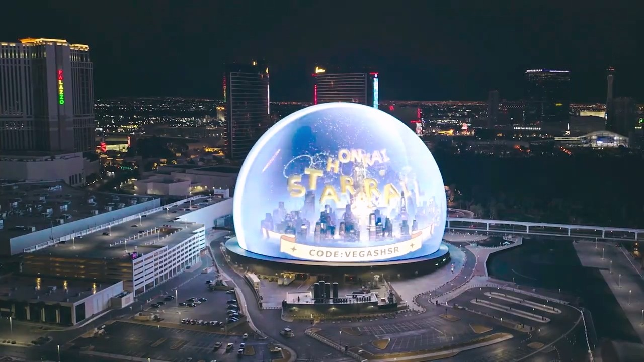 多位美国网友都在拉斯维加斯拍摄到了星穹铁道的这则广告,看着匹诺康尼的“吉祥物”钟表小子登上了拉斯维加斯的大球宣传,别说,趣味的橡皮管风格和当地的本土氛围还真挺契合的!