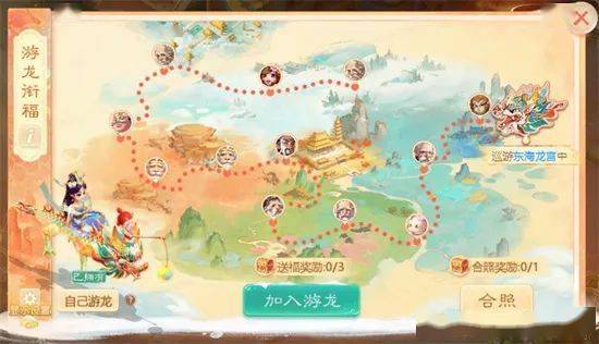 1)少侠可以每日进行游龙,完成3个送福点并领取当日奖励;