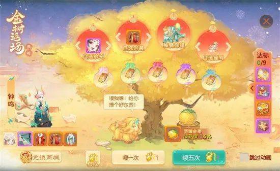 2)可在活动中对想选的礼盒进行许愿,抽到的礼包将定向为许愿礼包。香囊里有大量金福币,用于兑换所爱的返场外观或召唤兽以及其他奖励!