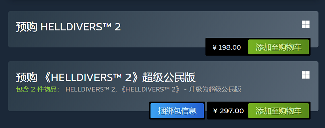 游戏首发提供标准版和豪华版(超级公民版),steam国内地区价格分别为198和297,凡是预购玩家可获得三套盔甲套装。