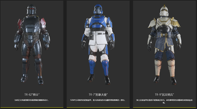 “TR-9‘民主骑兵’“- 穿上这套盔甲后虽然不能骑真正的马,却仿佛驾驭自由精神的良驹奔赴战场。