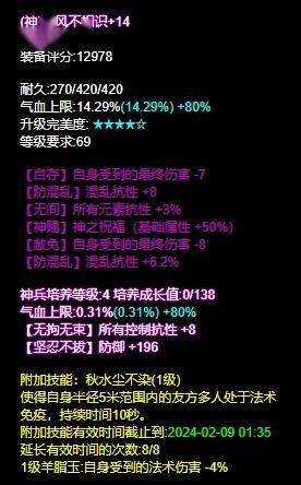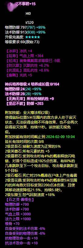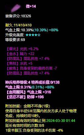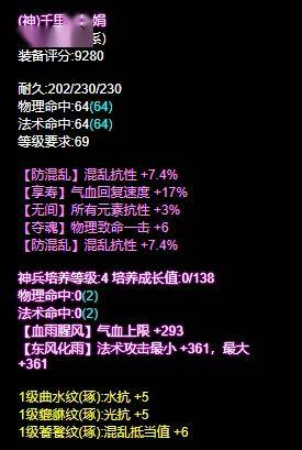 这位69级的奶妹大大走的是抗性辅助流。不仅武器带双混抗百比,整套更有多混抗与混抗百比堆叠,真是太极致了,73级的装备妥妥二级鉴定,自身站得住的同时还能抬手给队友解控,给足安全感。