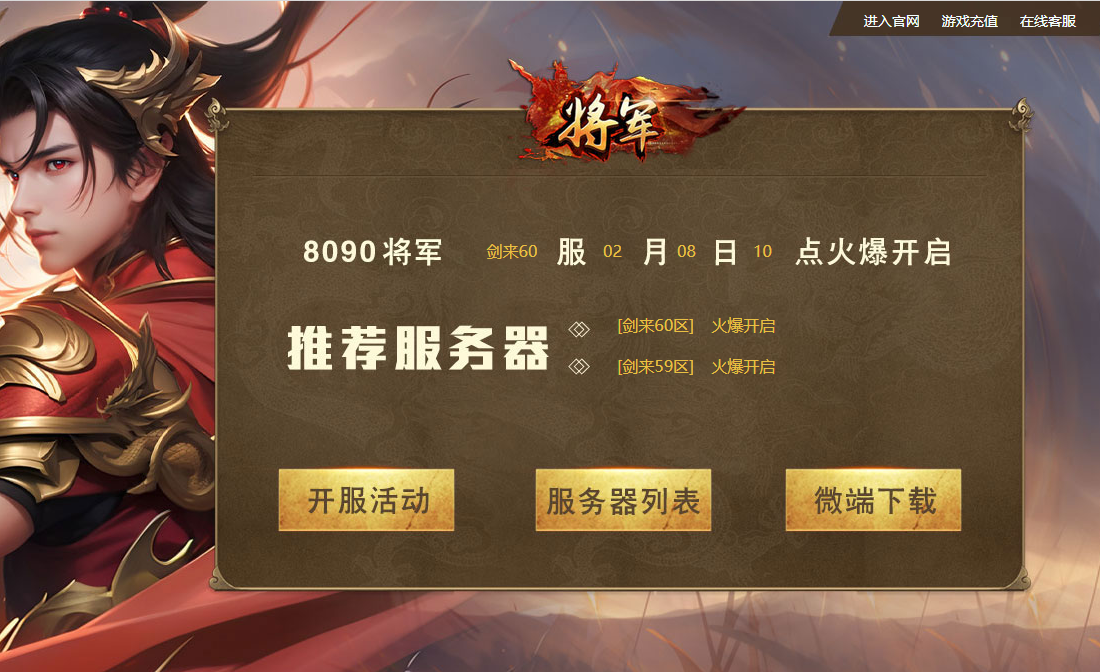 2月8日,当《将军》60服的大门缓缓打开时,一个全新的游戏世界将呈现在玩家面前。在这个世界中,每个玩家都有机会成为那个身披荣耀、手持利剑的将军。让我们在这个充满挑战与机遇的新服中,书写属于自己的传奇故事吧!
