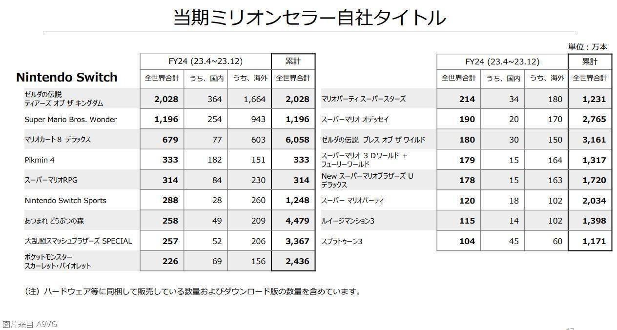 ·《超级马力欧兄弟 惊奇》1070万(截止至12月底为1196万)