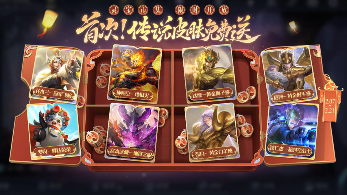 一、【灵宝市集】的活动,这是一个可以让你获得传说皮肤的机会,你只需要收集和出售小龙糕,就可以兑换小龙币,然后用小龙币去刷新礼盒,礼盒里面有各种各样的奖励,包括传说皮肤、史诗皮肤、限时点券、荣耀积分等等。你每天都可以领取一定数量的小龙糕,然后根据市场的价格,选择最合适的时机出售,获得更多的小龙币。你也可以和你的朋友互相交换小龙糕,增加收益。这个活动从2月7日开始,一直到2月21日结束,你有足够的时间去收集和兑换。但是,有一件事情你一定要注意,那就是在除夕当天,你登录后首次刷新礼盒,必定会出现一款史诗皮肤,而且还会送你10个莓莓酥酪,这是用来升级灵宝属性的代币,非常有用。另外,从除夕当天开始,你还可以领取皮肤卡,这是可以兑换任意皮肤的神器,千万不要错过!
