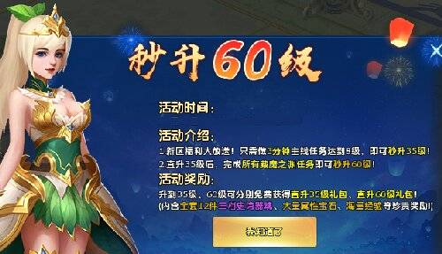 本次天女新服,除了有预约新服抽坐骑,瓜分绑金活动外,还包含了最受玩家好评的等级直升60级活动,快速直达60级领取全套装备及福利,大幅缩短新服练级时间,减少升级压力,直达热血PK玩法!同时,天女新服还推出2023年年终最强福利活动,新服登录游戏后可直接领取战力礼包,无门槛、无需砍价,直接就能获取!快来体验一下官方年终大回馈的感觉吧!