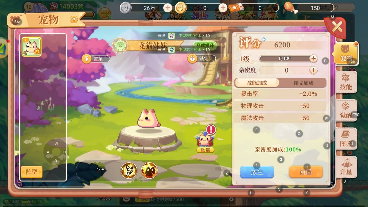 宠物:在游戏中,你可以拥有可爱的宠物。它们不仅可以增加你的战斗能力,还可以帮助你更快地移动和探索地图。