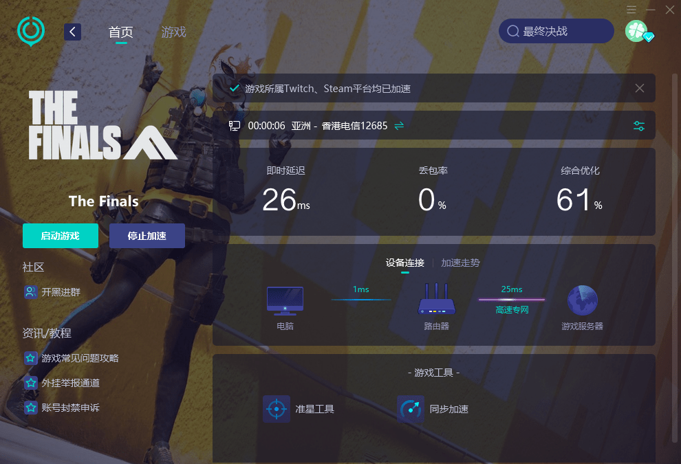 第2步、加-速完成即可获得稳定网络连接,畅玩最终决战(thefinals)