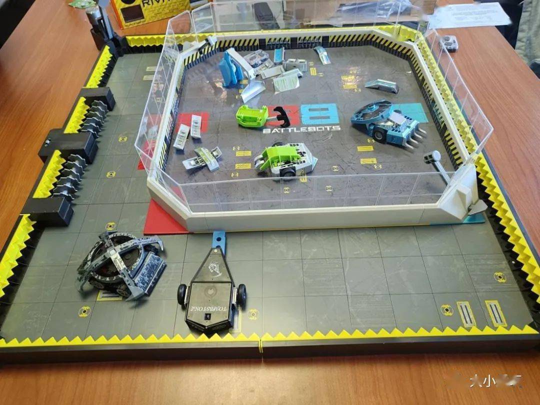 最后还要说一下,机器人不需要场地在家里地面或者桌面等光滑地点也可以玩,只是这样对玩具的磨损性比较大,也失去了有场地带来的难度限制。