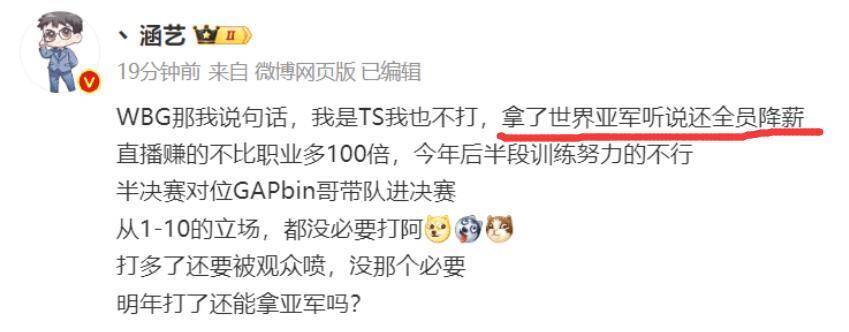 这件事大家都应该已经了解的差不多了,事情是这样的,之前WBG签约了theshy之后,给他的合同是对赌合同,直言他们能拿到好成绩,成绩越好,工资就越高,春季赛他们的成绩并不好,所以WBG没花多少钱。