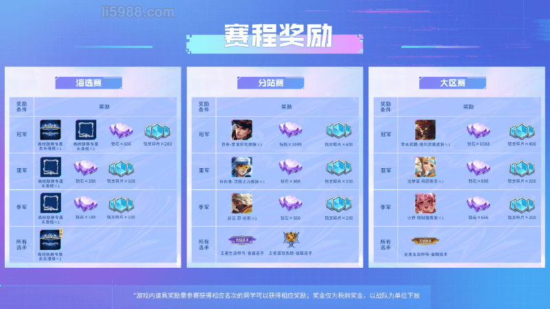 为了提升赛事体验,王者荣耀高校联赛还为参赛者准备了海量福利,报名且至少参加一场赛事的高校选手将有机会获得游戏内专属福利,例如:高校联赛专属击杀播报、专属头像框、生涯称号等限定道具,分站赛和大区赛更有皮肤可以获得,奖励极为丰厚也提供了更多趣味性的体验。