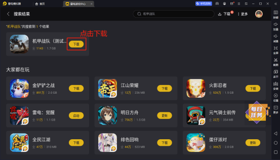 等待下载完毕后,在模拟器主页搜索机甲战队,直接点“下载”即可”。
