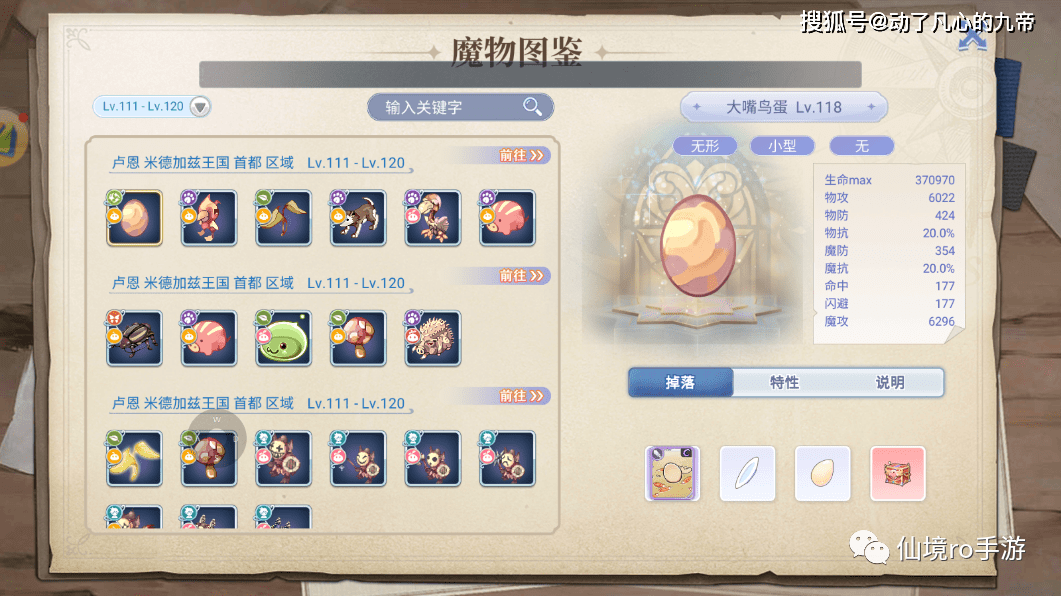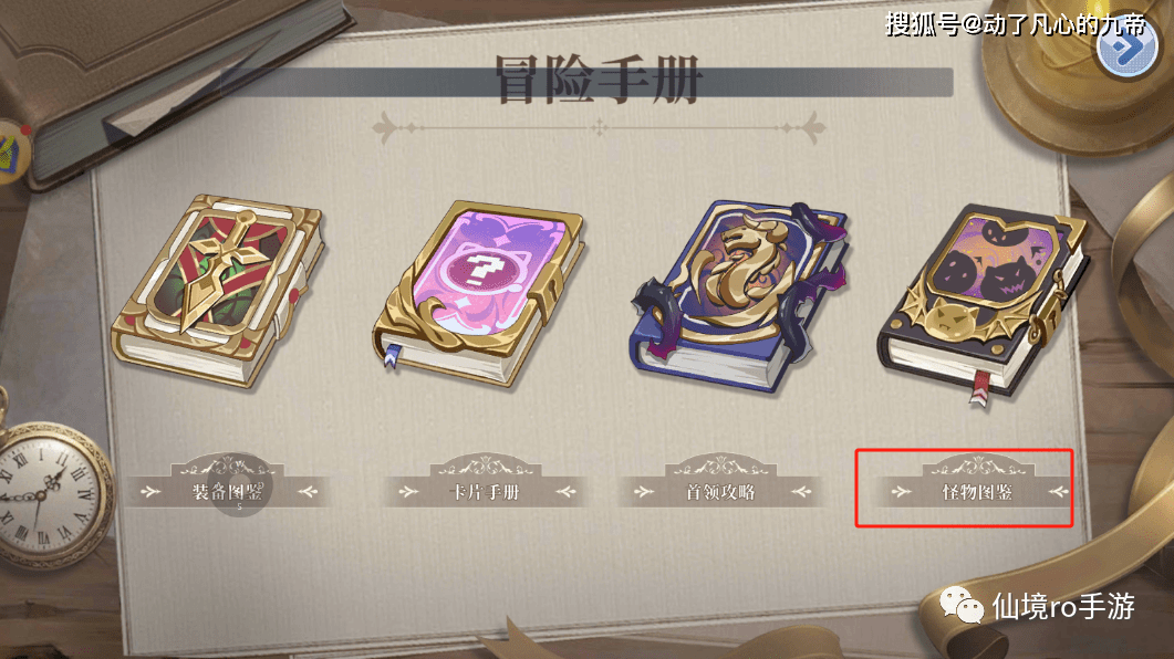 好了最后给大家奉献上如何去找这些怪物的方法,就是在游戏里面打开便捷功能里面的冒险手册,在冒险手册中看到怪物图鉴,点进去找到对应的怪物就好了!(至于这些怪物的掉率还有经验,小编这边还在测试等有具体的数值的时候再跟广大玩家分享)记得关注小编九帝,不然后续小编分享更多的内容攻略的时候你们会不知道的哟!