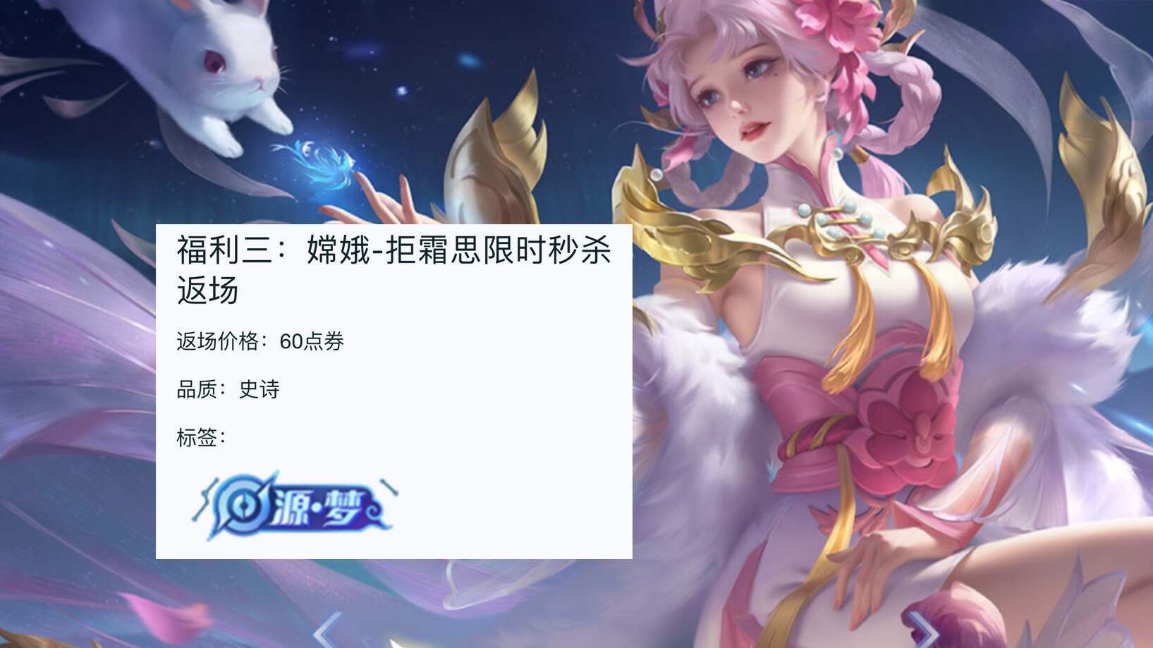 另外,近期蒙犽的6元史诗和大乔的星梦星元都会上架了,大家也提前准备好点券哦。源梦皮肤上架的同时,嫦娥的拒霜思6元皮肤也进行了返场,而且这款皮肤还是以原价进行返场的,相对来说还是比较良心。