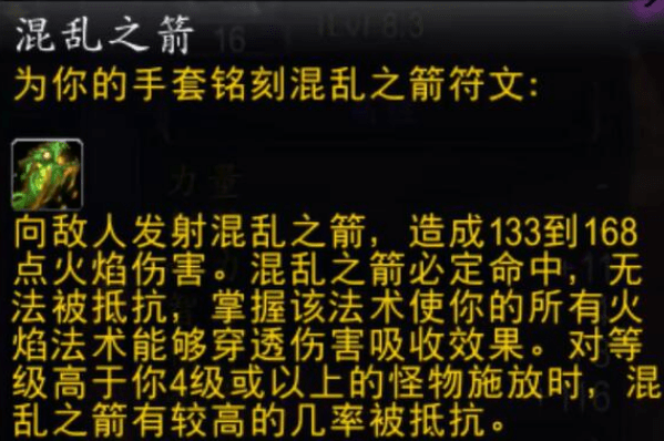 此外,在目前的魔兽世界游戏中,混乱箭并不是一个非常实用的技能。由于其使用条件较为苛刻,且效果不如其他一些技能实用,因此很多玩家都没有选择使用这个技能。不过,对于一些喜欢挑战高难度战斗的玩家来说,混乱箭仍然是一个值得掌握的技能。