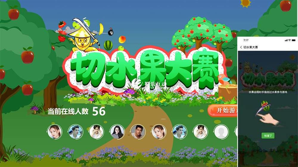 切水果游戏是一种轻松愉快的游戏,可以让观众在游戏中放松心情。游戏开始后,屏幕上会显示各种水果,观众需要用手指滑动屏幕来切水果。在规定时间内切中尽可能多的水果就可以获得胜利。这个游戏可以让观众在轻松愉快的氛围中参与其中,增加晚会的欢乐气氛。
