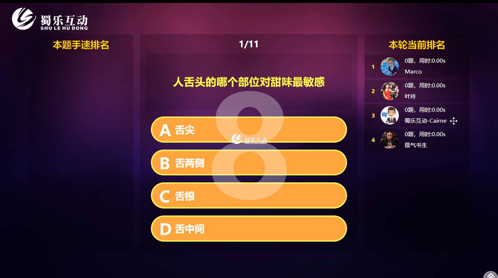 现场答题游戏是一种富有知识性的游戏,可以让观众在回答问题的过程中增加知识储备。游戏开始后,大屏幕和手机上会同时出现题目,用户在手机端进行作答,屏幕上会实时显示用户答题排名情况。