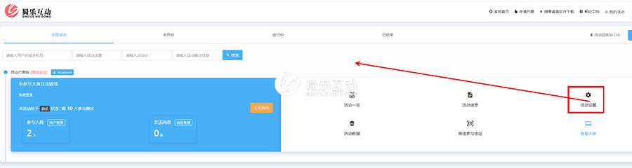 6、如果需要做些个性化的设置,可以返回后台点击“活动设置”进入对应游戏产品设置里面进行设置。