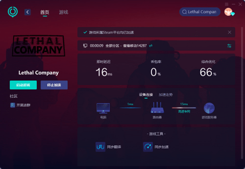 然后、加-速完成后即可获得一个稳定的网络连接,启动畅玩LethalCompany致命公司
