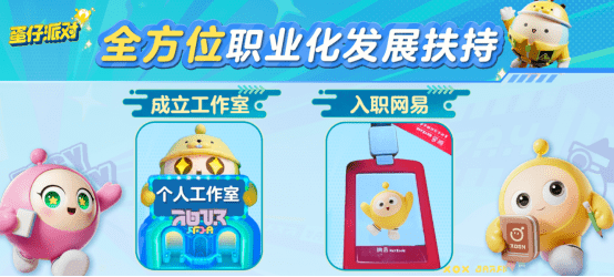 与此同时,优秀创作者还将在《蛋仔派对》的协助下成立个人工作室,入选【百人入职猪场】计划,以专业化、职业化「照亮」创作之路,与蛋仔携手共赴新未来,探寻人生更多的可能性。