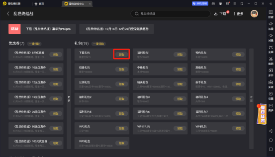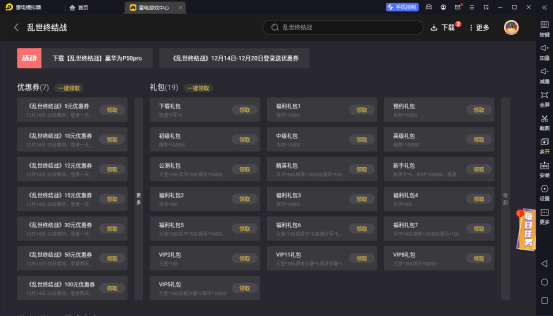 二、如何在雷电模拟器上领取乱世终结战电脑版福利?