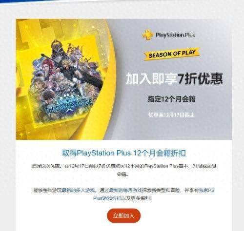友情提醒,PlayStation的Season OF Play的PS+优惠活动即将于12月17日截止,玩家在12月17日前订阅年费会员可以享受7折优惠。