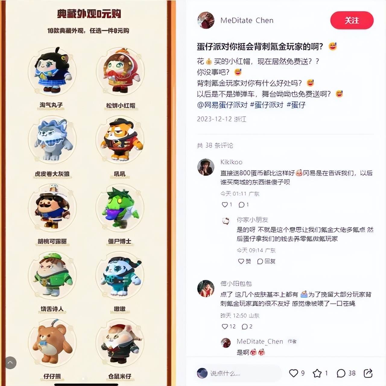 更让玩家感到不满的是,《蛋仔派对》将一些原本需要氪金购买的皮肤免费送出,这种做法让已经购买的玩家感到十分不满,大家认为这是对氪金玩家的不尊重。对于一个已经运营了快两年的游戏来说,还是推出这种只利好新玩家,背刺老玩家的活动,只能说明策划实在是不上心。明明有很多的游戏内容可以当作福利,却偏偏选择被老玩家们公认为“背刺”的方式。