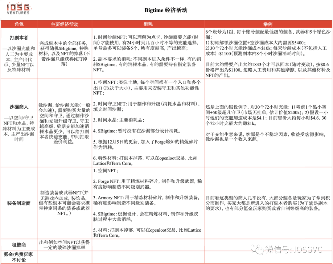 角色:打副本者(以沙漏充能和人工为主要成本,主产出代币、少量NFT以及特殊材料)