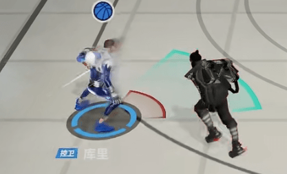 面对中高端的库里玩家,这招就有地方需要注意了。首先是高端玩家会利用库里的转身撤步投篮来骗跳。因为库里在转身动作前也会有“白线”显示,大家要记得不要被骗。