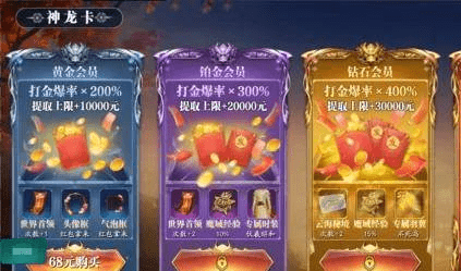 与终身卡周期性获得收益不同,神龙卡的价值不仅能根据解锁档位获取专属时装,羽翼等,更能直接提高打金红包的爆率,最高档位能提升500%的爆率!绝对是肝帝白嫖党的福音,一天下来获取的红包收益无法估量。最重要的是神龙卡还能提升每日提取的额度上限,一方面提取远超他人的灵玉数量,购买各类道具,不管是时装党还是战力当,提升都是巨大的。另一方面,系统会记录玩家提取额度的次数,会触发另外两个更为超值的奖励系统