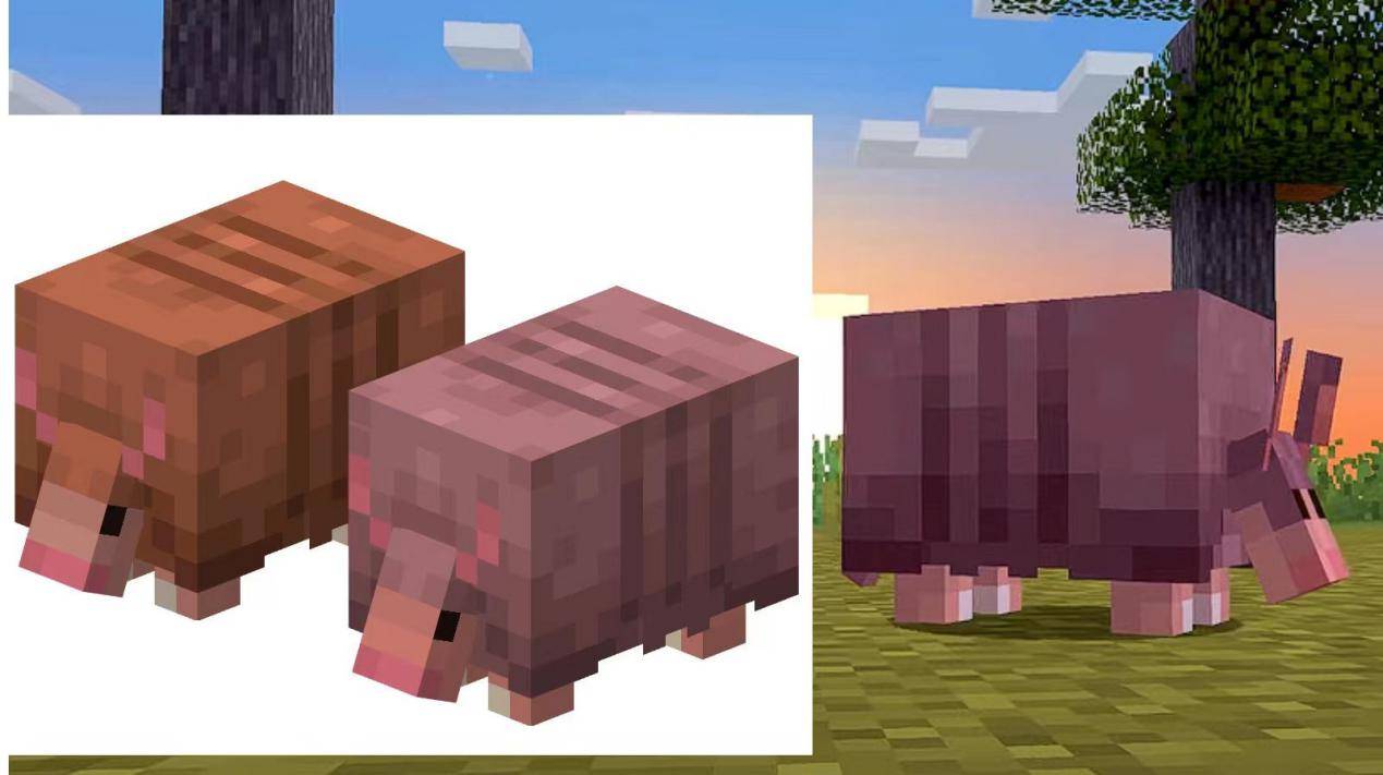 7、犰狳的尾巴:最初犰狳在投票设计的形象(概念艺术设计)是有一条尾巴的,实际上在Minecraft中很多小型生物都没有尾巴的设计,类似猪一样的尾巴设计,只是一个平面。一个有趣的故事就是,猪在刚开始加入到Minecraft的时候,就连鼻子也是一个平面。