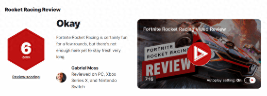 《堡垒之夜》新模式“火箭竞速”已上线有一段时间了,IGN为其打出了6分的成绩,认为该模式有点意思但新鲜感不足。
