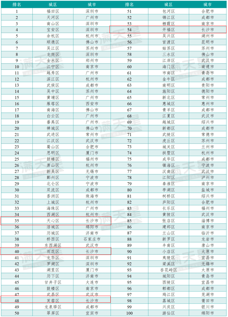 12月10日,《赛迪投资竞争力百强区(2024)》榜单出炉,长沙市天心区排名第35位。