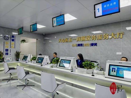 12月10日上午,熙熙攘攘的步行街上,五一商圈管委会一楼的24小时智慧政务服务大厅正式启用。这是全省首个开办在商圈内的智慧政务大厅,共有6个窗口,6个后室审批席位,可办理多个部门的125项政务服务事项,惠及五一商圈和周边5000余家企业、上万门店以及市民群众。坡子街街道老居民王先生来办理相关手续,从进入大厅到前往政务服务一体机完成申请,再到材料确认盖章,整个过程用时仅十多分钟。他高兴地说道:“现在步行十分钟就能到达智慧政务服务大厅,大厅有市监等部门的专窗和两个综合窗口,可以办理一百多项业务咧。”