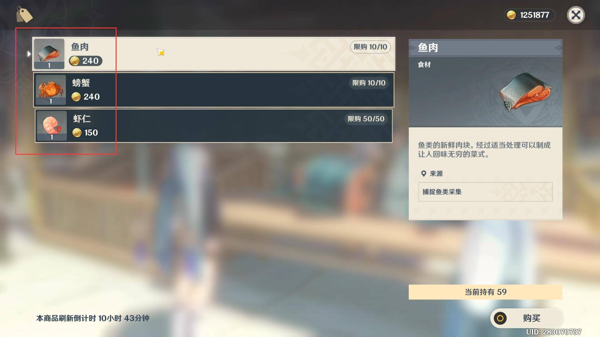 当我们玩家转头看到另外一边有个叫小孙的人,这个人就不一样了,我们玩家打开他的商店页面一看,好家伙,他卖的鱼明显便宜了很多,鱼肉240摩拉,而螃蟹也一样的价格,更重要的是虾仁更是特别良心,只要150摩拉,因此,很多玩家一对比,旁边的高启强这么奸商,他却这么良心,绝对的良心商家呀。