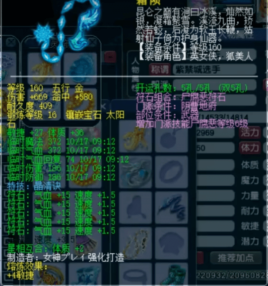 160级16锻武器,熔炼后体敏双加67、总伤669
