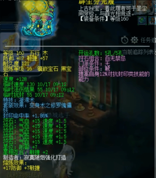 160级16锻双蓝字鞋,熔炼后防御104、敏捷64