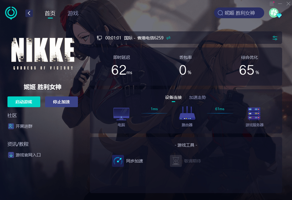然后——点击即可优化网络,流畅游玩《妮姬胜利女神》