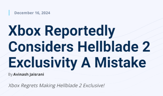 与此同时,tech4gamers也对《地狱之刃2》的发布策略提出了自己的看法。他们指出,考虑到该游戏目前的商业表现似乎并未达到预期,Corden的观点无疑具有一定的参考价值。这一观点进一步加剧了外界对Xbox未来游戏发布策略的猜测和讨论。