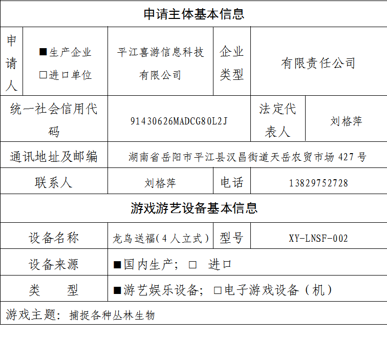 游戏游艺设备内容核准单-批准文号:湘游艺审〔2024〕182号