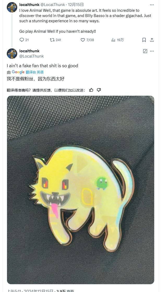 而作为今年最成功的独立游戏开发者,《小丑牌》的作者Localthunk最近却安利起了另一款单人开发的独立游戏《动物井》。在X动态中他对《动物井》丝毫不吝赞美之词,强烈推荐大家去体验这款佳作。